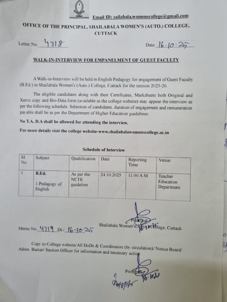 Posted innotice notices Recruitment Walkin interview for guest faculty Posted by By SBWAC October 16, 2025 SBWAC View All Posts Post navigation Previous Post Form fillup notice for UG and B.Sc ITMNext PostUG 1st Yr Hostel Selection Notice -2025 Admission Batch- 4th Round